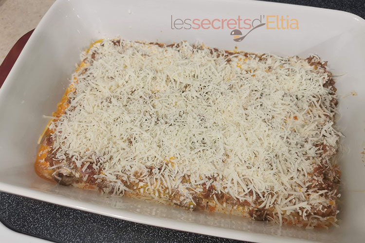 - Sur la dernière couche, ajoutez autant de fromage que vous souhaitez.