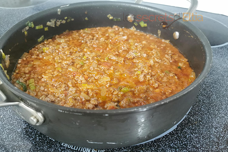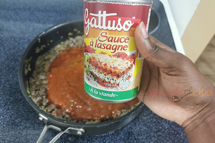 - Au bout de quelques minutes, ajoutez la sauce à lasagne à la viande.